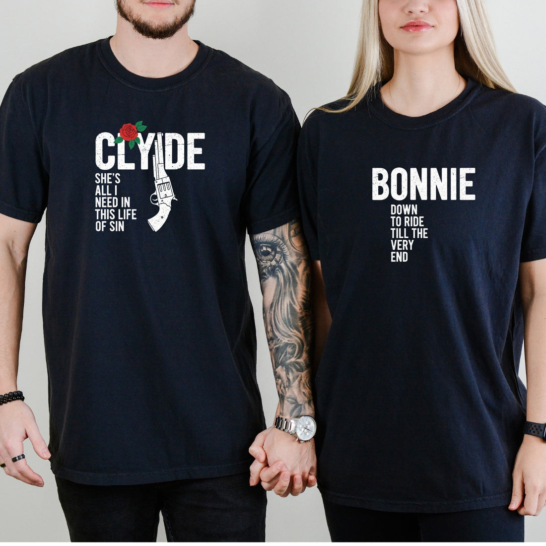 Bonnie Down To Ride Clyde She's All I Need Matching T-Shirts For Couples Looking for...