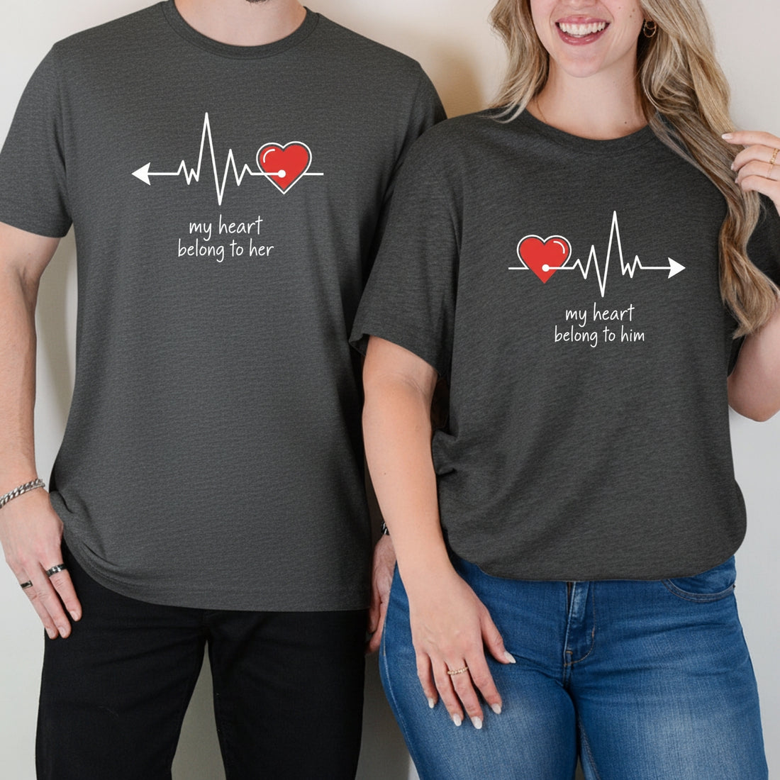 My Heart Belong To Her Him Heart Beat Matching T-Shirts For Couples